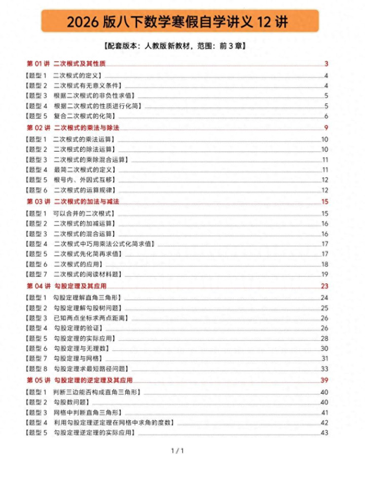 亚搏app 八下数学寒假预习系列, 全册常识点回来全面, 磨真金不怕火详备
