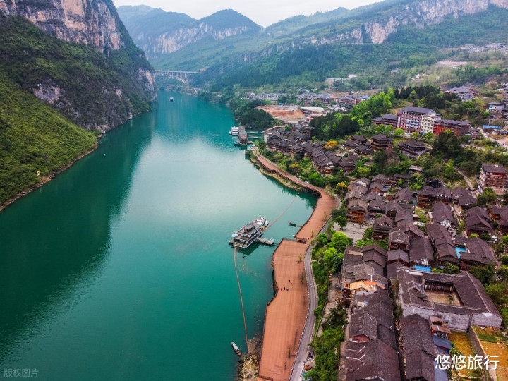 乌江两岸的春花还在盛放期,碧绿的江水、峭壁上的古镇、烂漫的山花,果真一步一景。