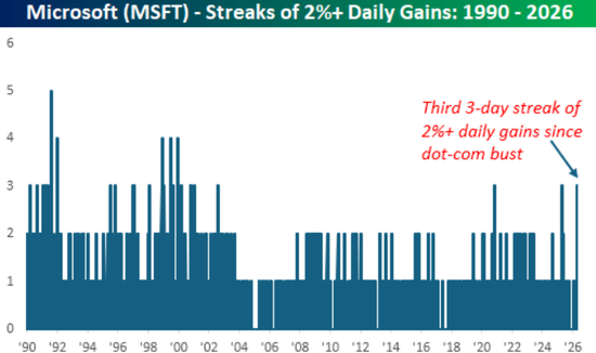 更引东谈主平缓的复苏来自传统软件和云缱绻巨头微软。公司在短短3个往来日里飞腾11%,市值增多近3000亿好意思元。商场磋议公司Bespoke的统计融会,本周亦然老牌科技巨头自互联网泡沫幻灭以来,亚搏app注册第三次出现鸠集三日涨幅均跳动2%的情况。