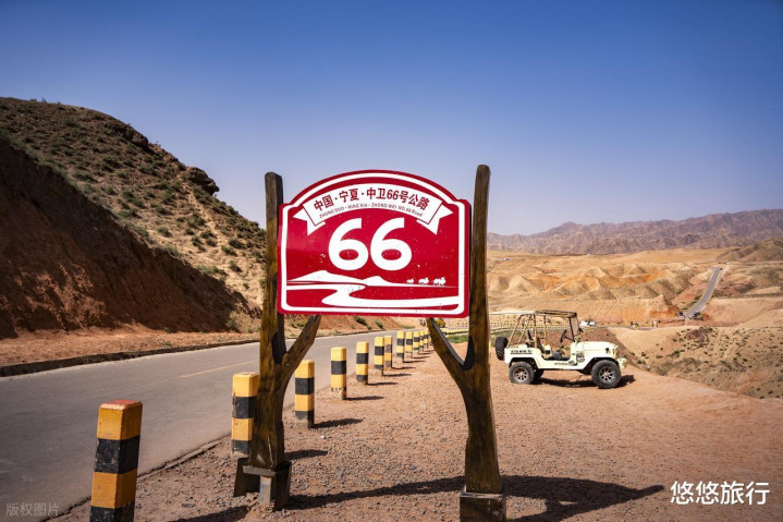着手孟家湾高速口,尽头北长滩古墟落。38 公里的戈壁公路鬈曲在黄河与黑山之间,左手奔腾黄河水,右手赤红山崖壁。