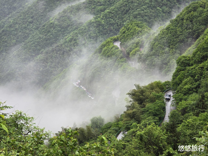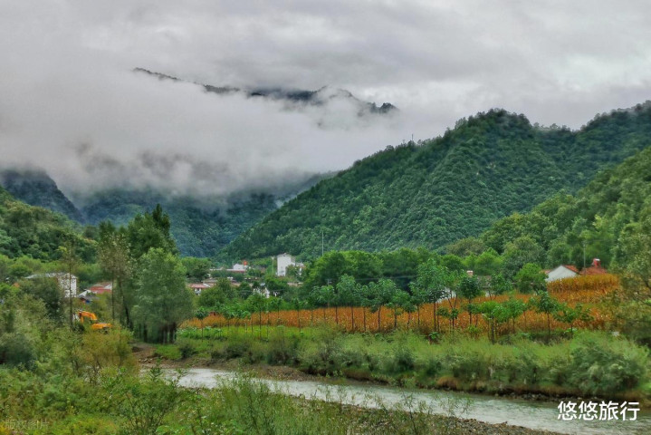 贯穿宝鸡凤县与汉中留坝的39公里景不雅公路。穿越山林古谈,两侧水杉银杏交汇成丛林正大。
