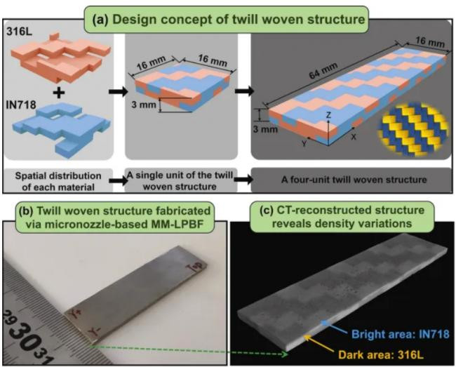 图3 三维多材料编制结构,杀青多材料新结构的创意狡计和制造,赋予新功能、高性能
