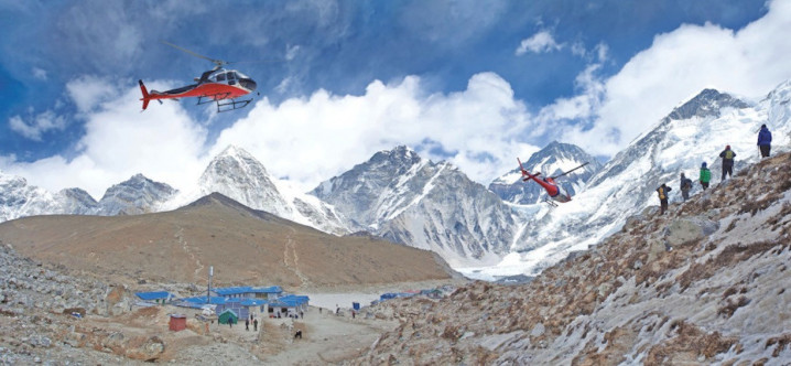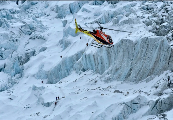 目击登山者发病,向导坐窝开启调停方式,用卫星电话招呼来了直升机调停。