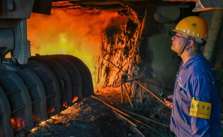在宝钢股份宝山基地规定中心的大屏幕上,辽远2号高炉出铁口,酷热铁水翻涌、铁花四溅。
