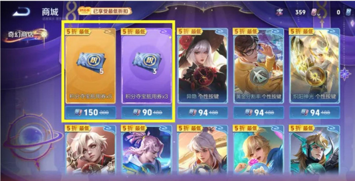 玄幻商店的皮肤固然低廉,可是有不少玩家不买账,因为他们更看好的是售价150点券的积分夺宝券。天下齐知说念,积分夺宝券不错抽荣耀水晶。而玄幻商店亦然给出了最大的扣头力度,150点券就不错购买5张积分夺宝券。90点券不错购买3张积分夺宝券,况且撑持绑定点券,是以无数玩家使用150点券购买了积分夺宝券,毕竟春节时代的充值点券齐送了不少绑定点券。